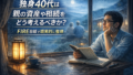 独身40代だと、この相談しにくさはさらに強くなります。結婚していれば、少なくとも夫婦の中で将来設計として話せる場合があります。でも独身だと、相談相手がいないまま、頭の中で何周も考え続けることになりやすい。